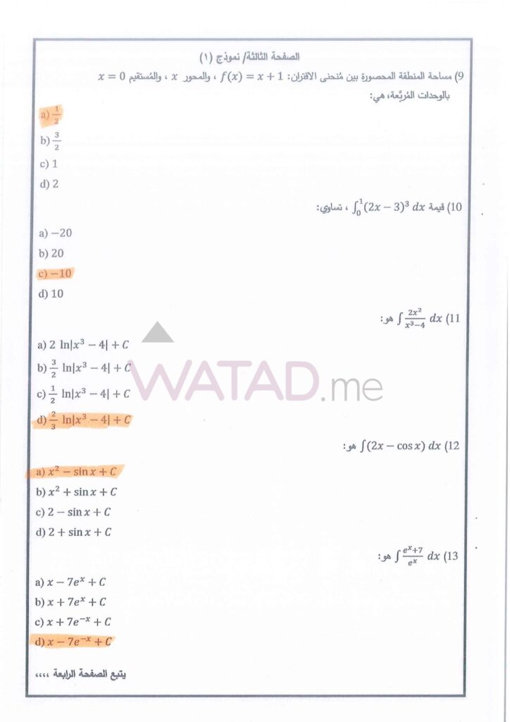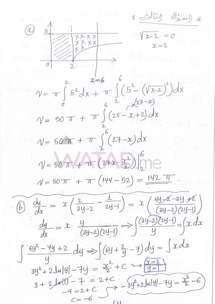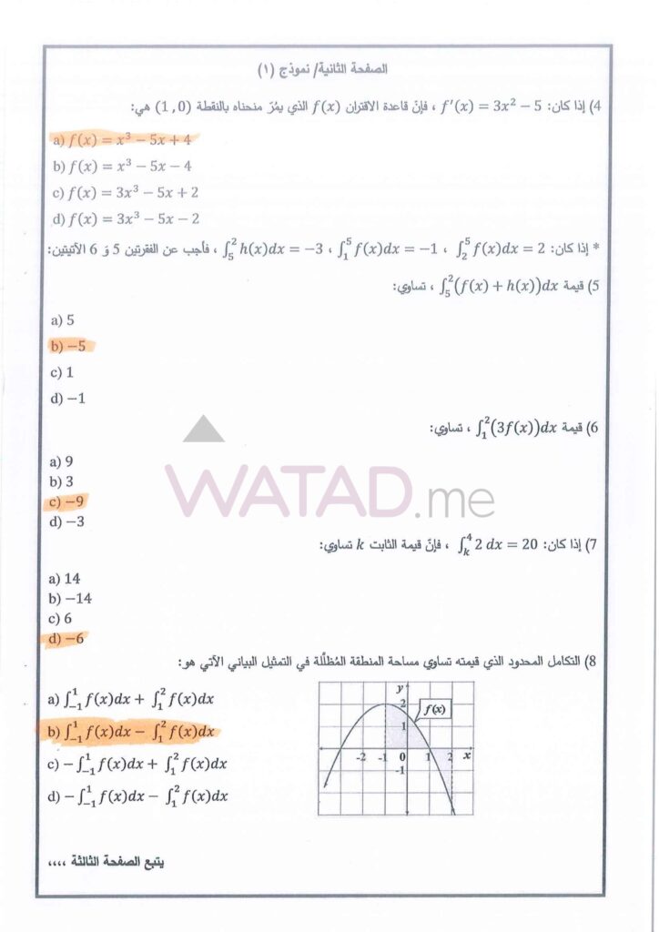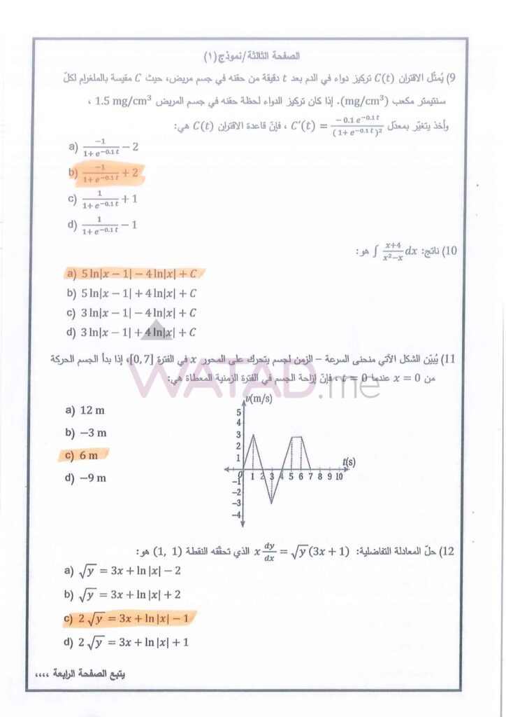 يبحث طلبة الفرع العلمي الآن عن الإجابات الدقيقة لأسئلة التفاضل وتطبيقاته. نوفر لكم هنا الحلول النموذجية المقترحة: