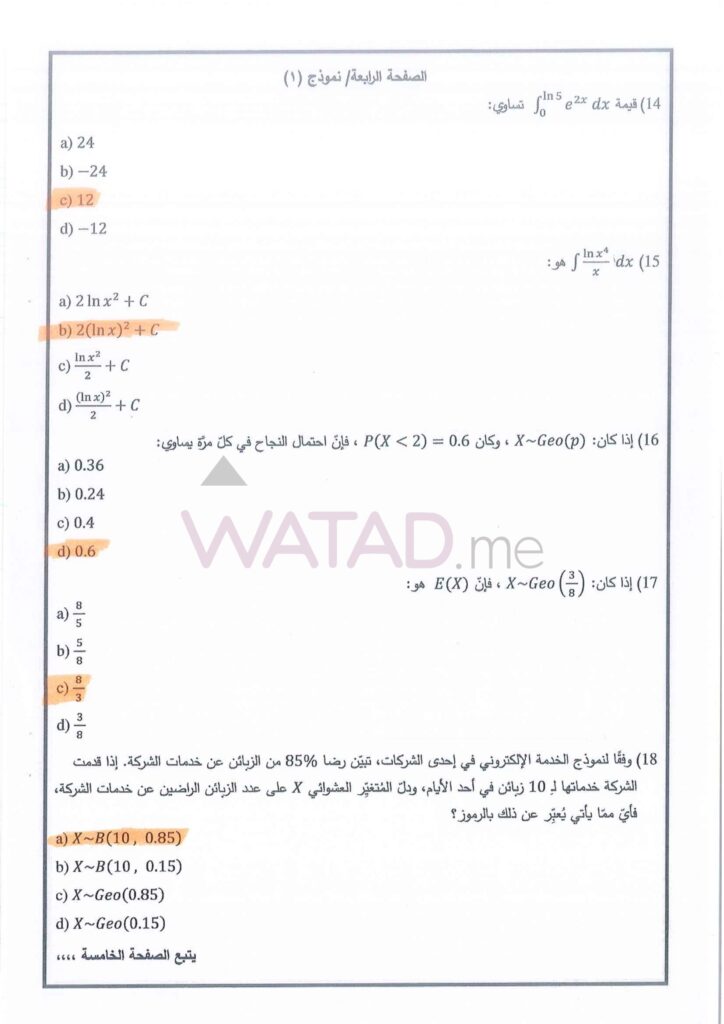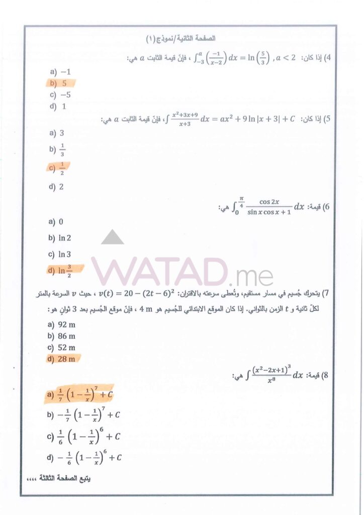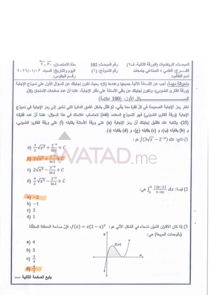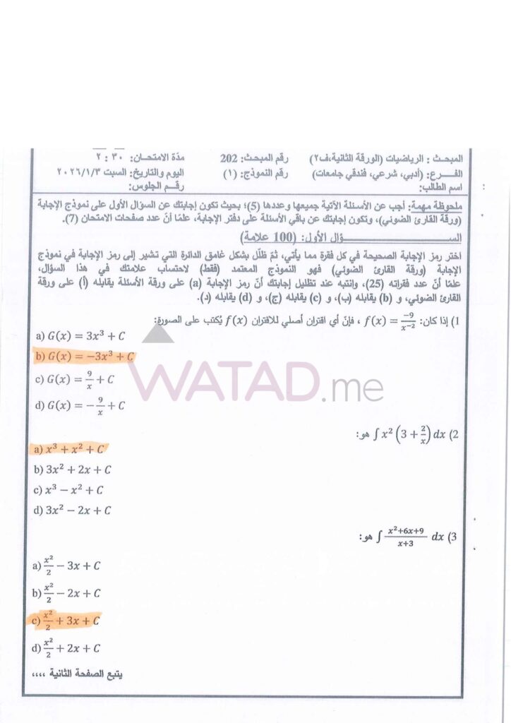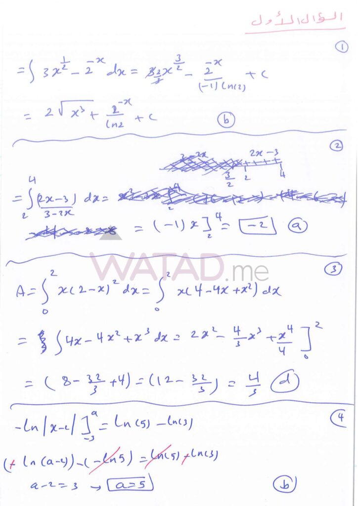 يبحث طلبة الفرع العلمي الآن عن الإجابات الدقيقة لأسئلة التفاضل وتطبيقاته. نوفر لكم هنا الحلول النموذجية المقترحة: