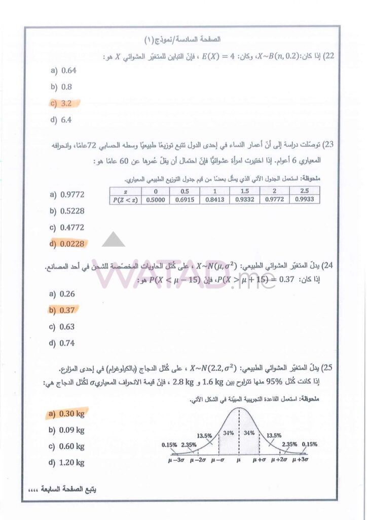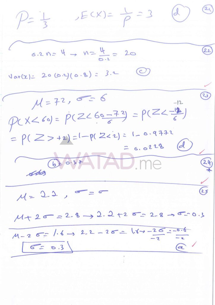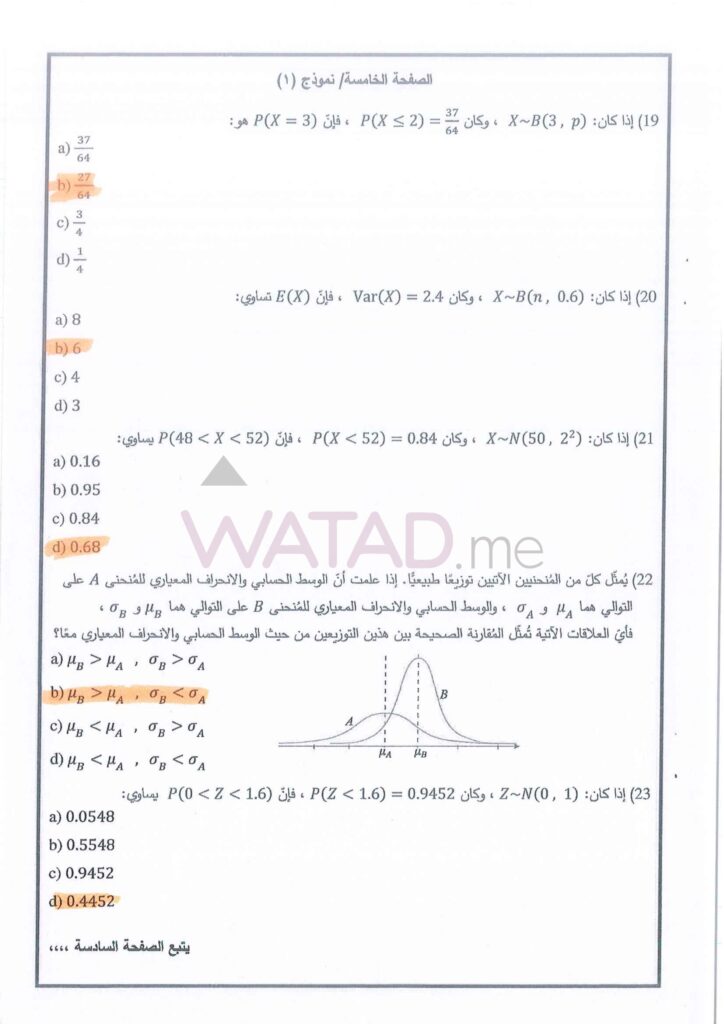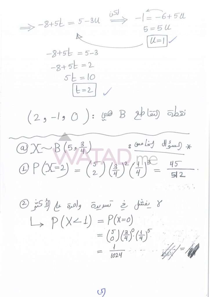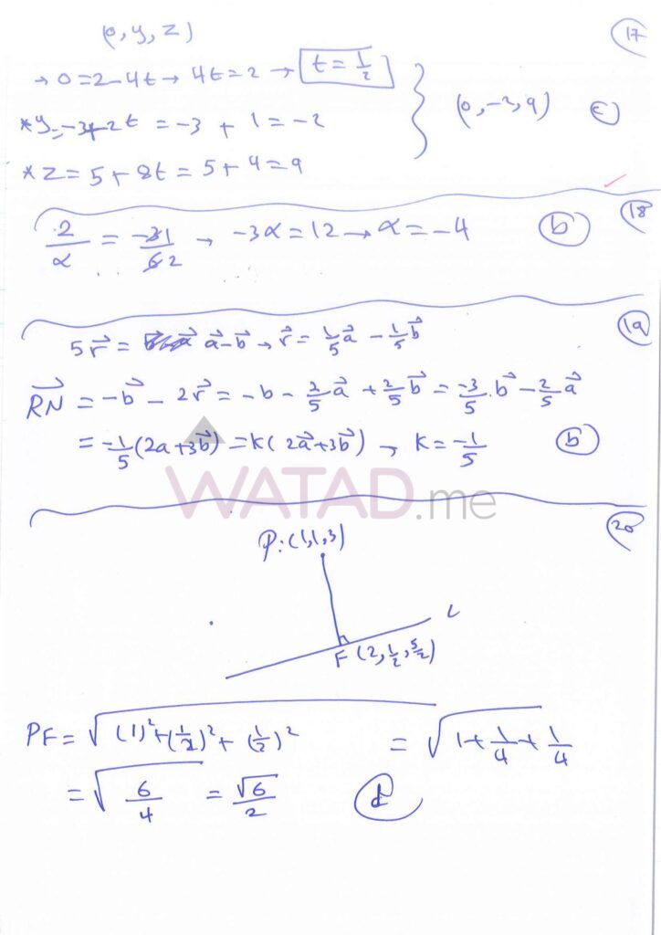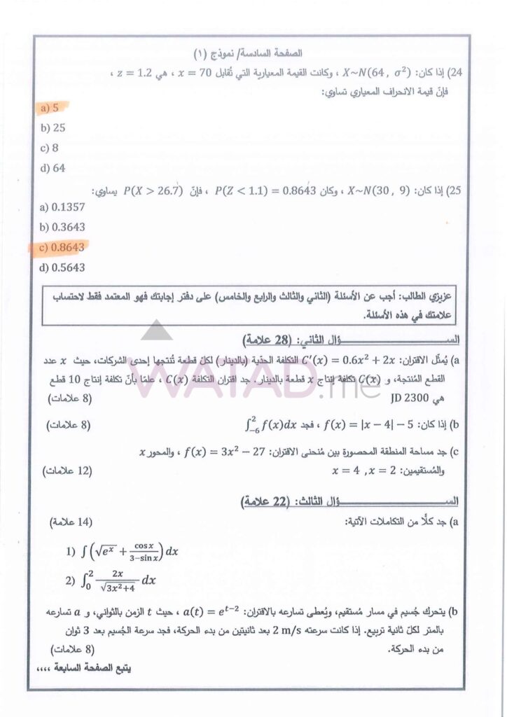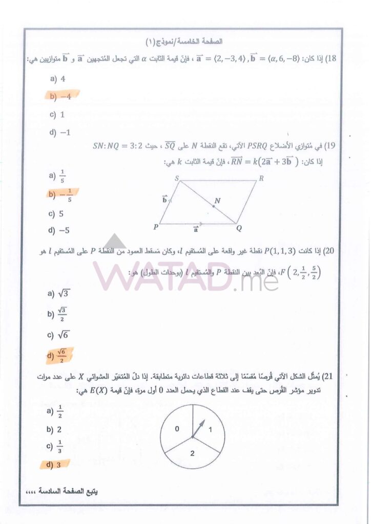 اجابات امتحان الرياضيات توجيهي التكميلي 2025 (ورقة الثانية) 2007 الوزاري