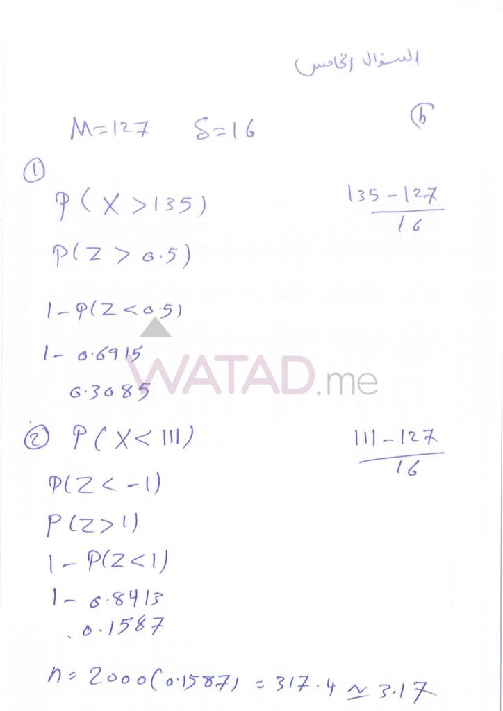 حل امتحان رياضيات توجيهي الادبي 2007 تكميلي (الورقة 2)